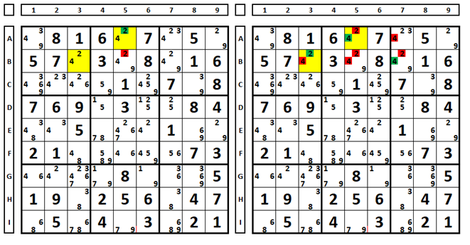 Apesar de não indicar a solução para a célula A5, qualquer escolha excluirá o número “2” da célula B5.